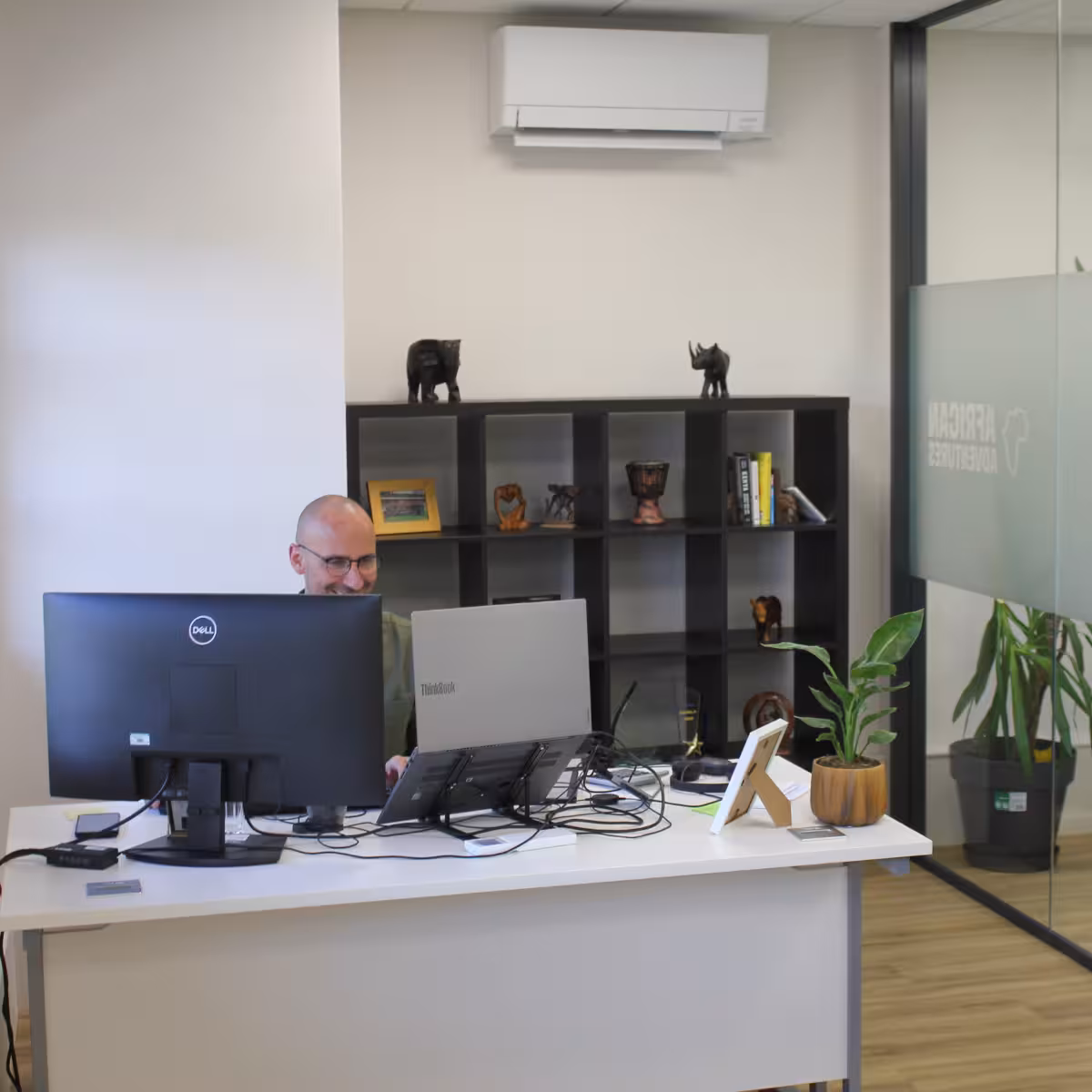 The design brief was to create a light, fresh, and open-plan environment that reflected the natural textures and tones of the African landscape. We paired clean, modern finishes with earthy, wood-inspired elements to evoke a sense of connection to the regions where African Adventures operates.
